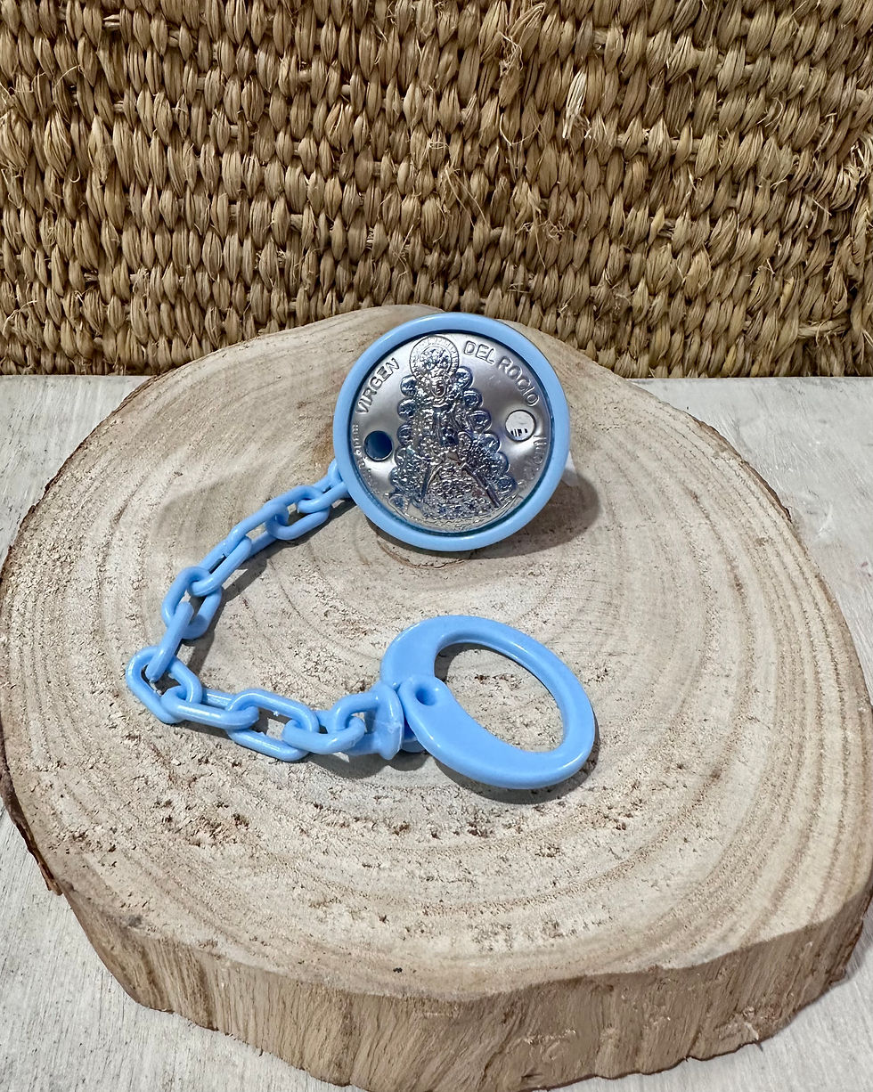 Cadenada Chupete Bolas Laminada en Plata Azul