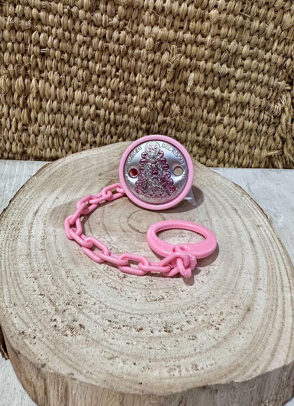 Conjunto Cadena y Portachupete Laminado y Esmaltado en Plata Rosa
